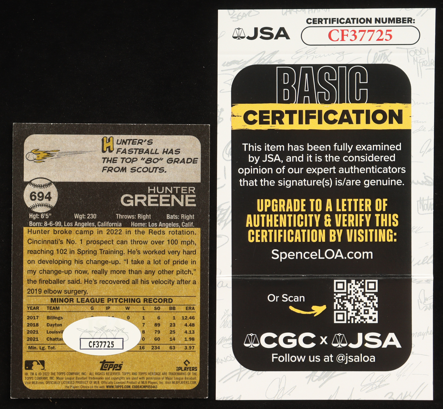 Hunter Greene Signed 2022 Topps Heritage #694 RC (JSA)