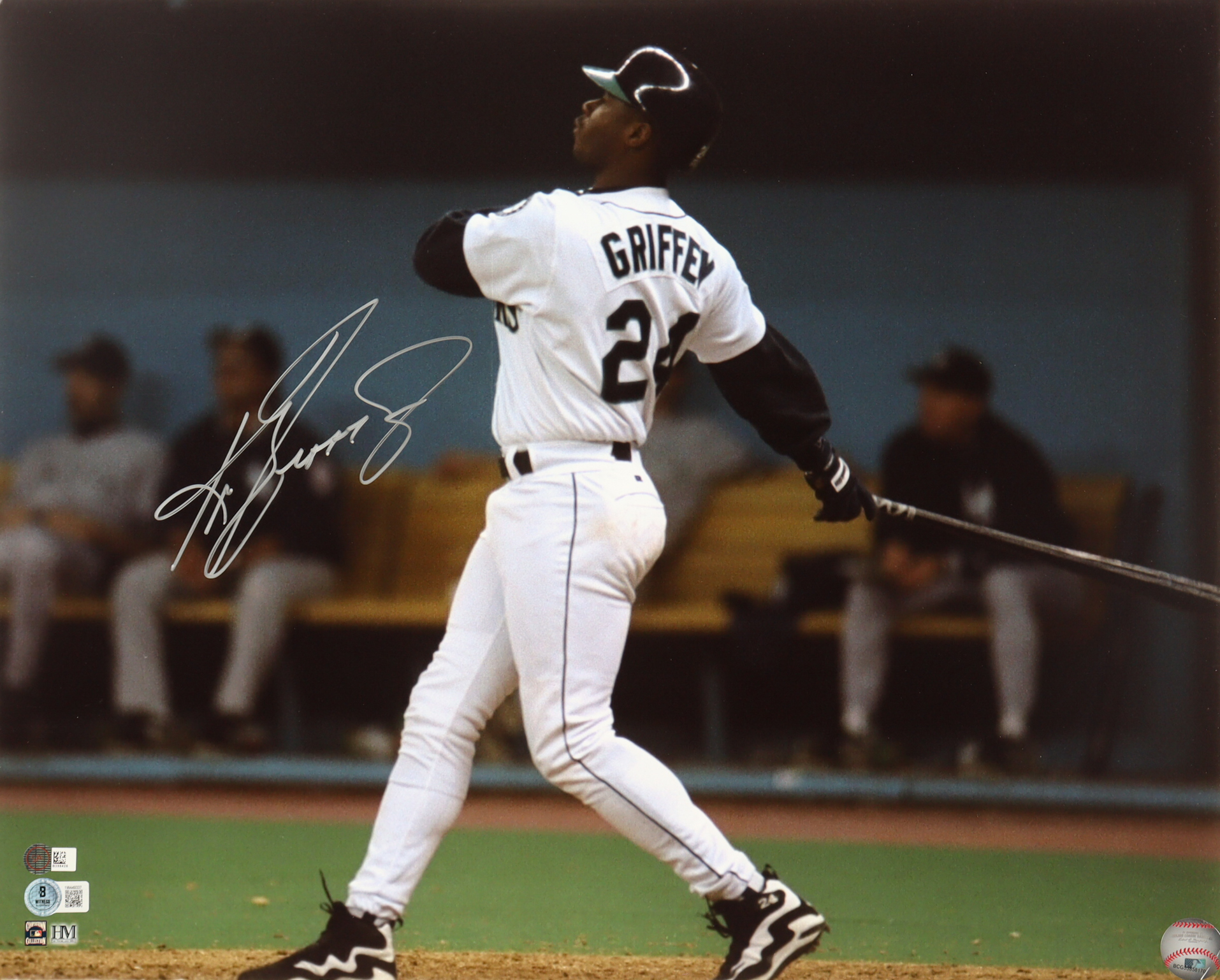 Photo measures 16" x 20" in size. Hand-signed by Ken Griffey Jr. (Seattle Mariners, HOF). Please note, the corners are creased.