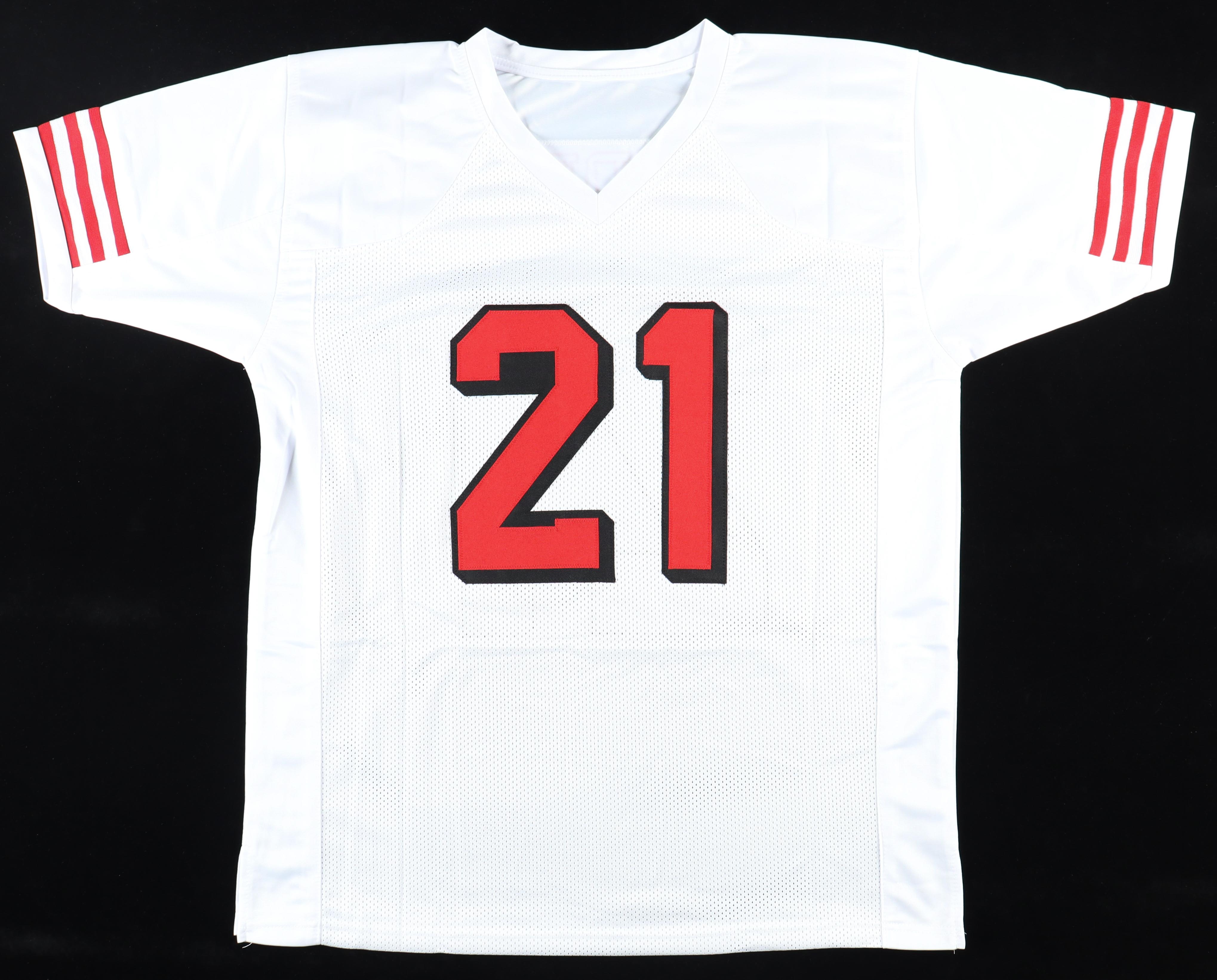 Custom jersey with everything sewn on, size XL. Hand-signed by Deion Sanders (HOF).