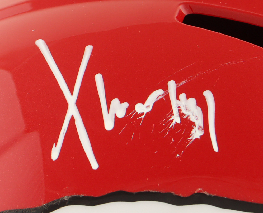 Riddell Kansas City Chiefs Full-Size Speed Replica Helmet. Hand-signed by Xavier Worthy. Please note, the signature has been smudged.