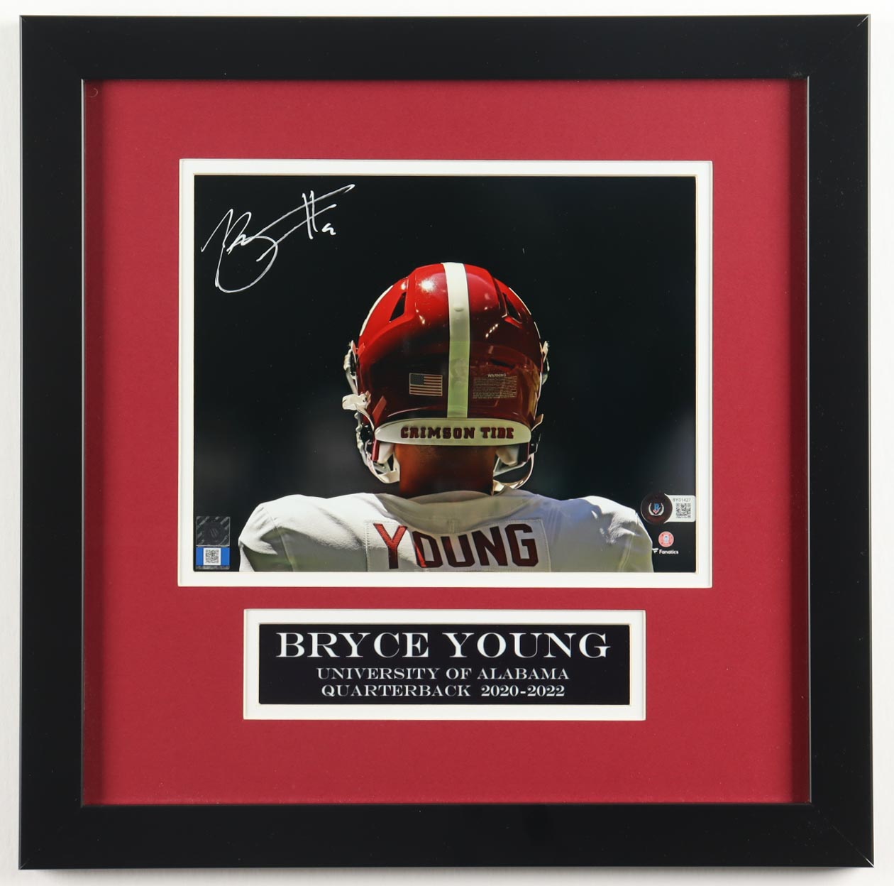 Custom frame measures 16” x 16” in size and features a photo that has been hand-signed by Bryce Young.