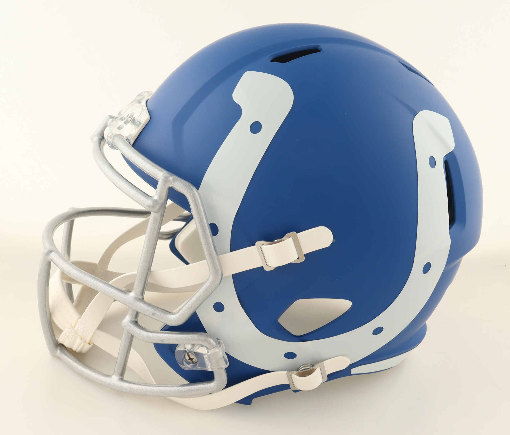 Riddell Indianapolis Colts full-size replica AMP alternate Speed helmet. Hand-signed by Jacoby Brissett.