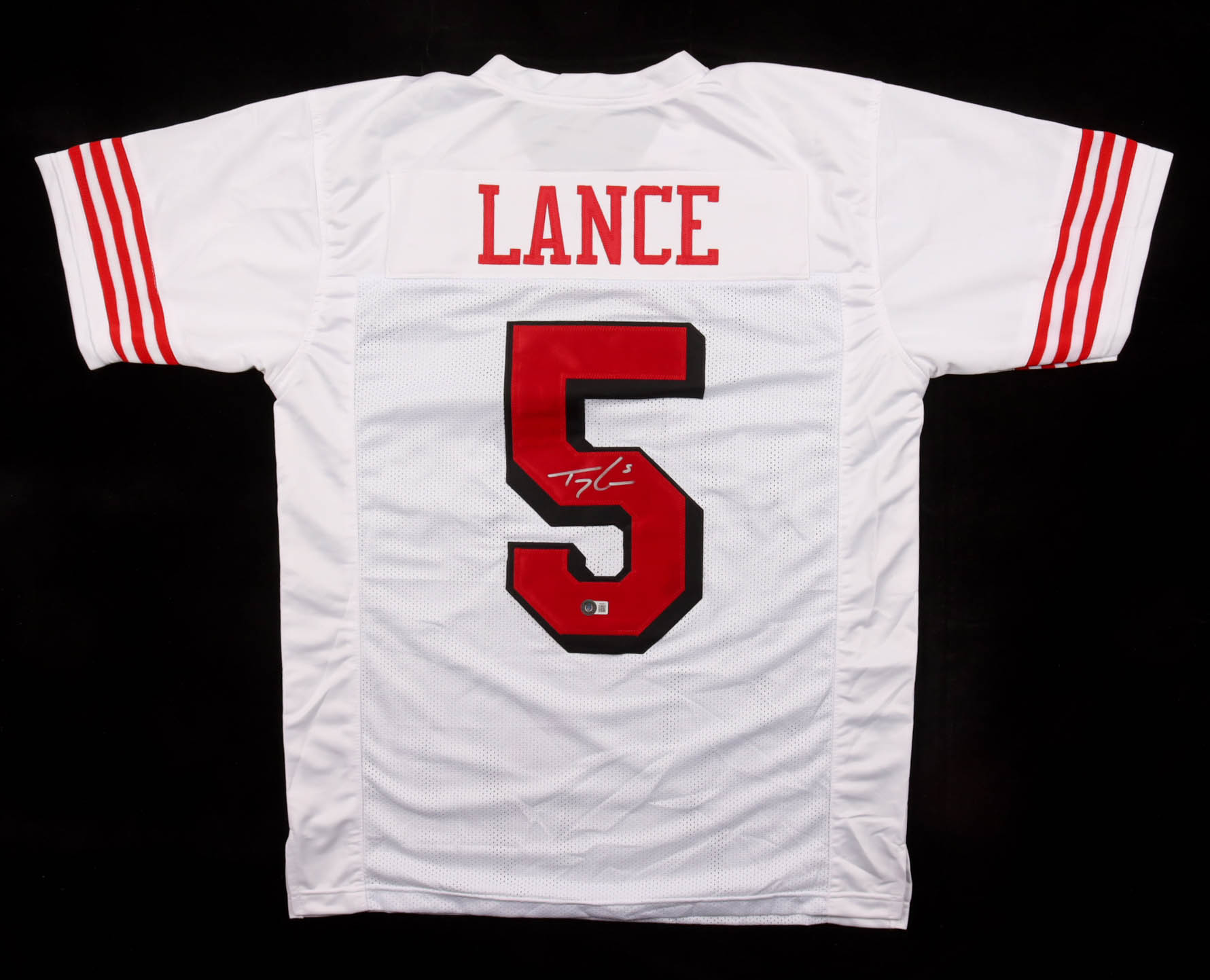 Custom jersey with everything sewn on, size XL. Hand-signed by Trey Lance (San Francisco 49ers).