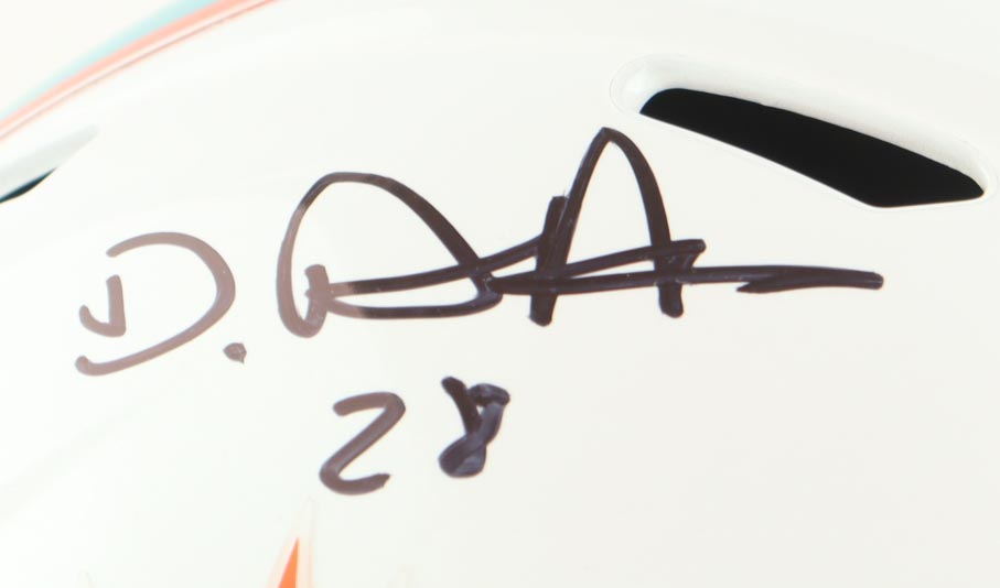Riddell Miami Dolphins full-size speed replica helmet. Hand-signed by De'Von Achane.
