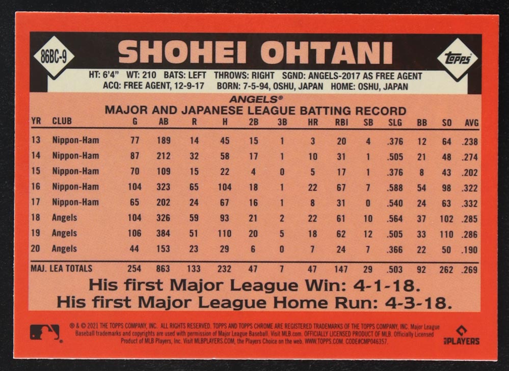 Shohei Ohtani 2021 Topps Chrome '86 Topps #86BC9
