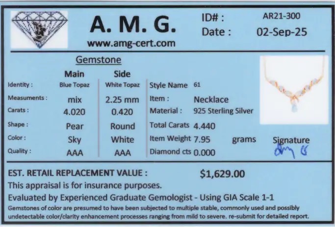 4.44 CTW Blue Topaz & White Topaz 18K Gold Plated Designer Necklace Size 19 Inches| Estimated Retail Value: $1,629 (AMG)