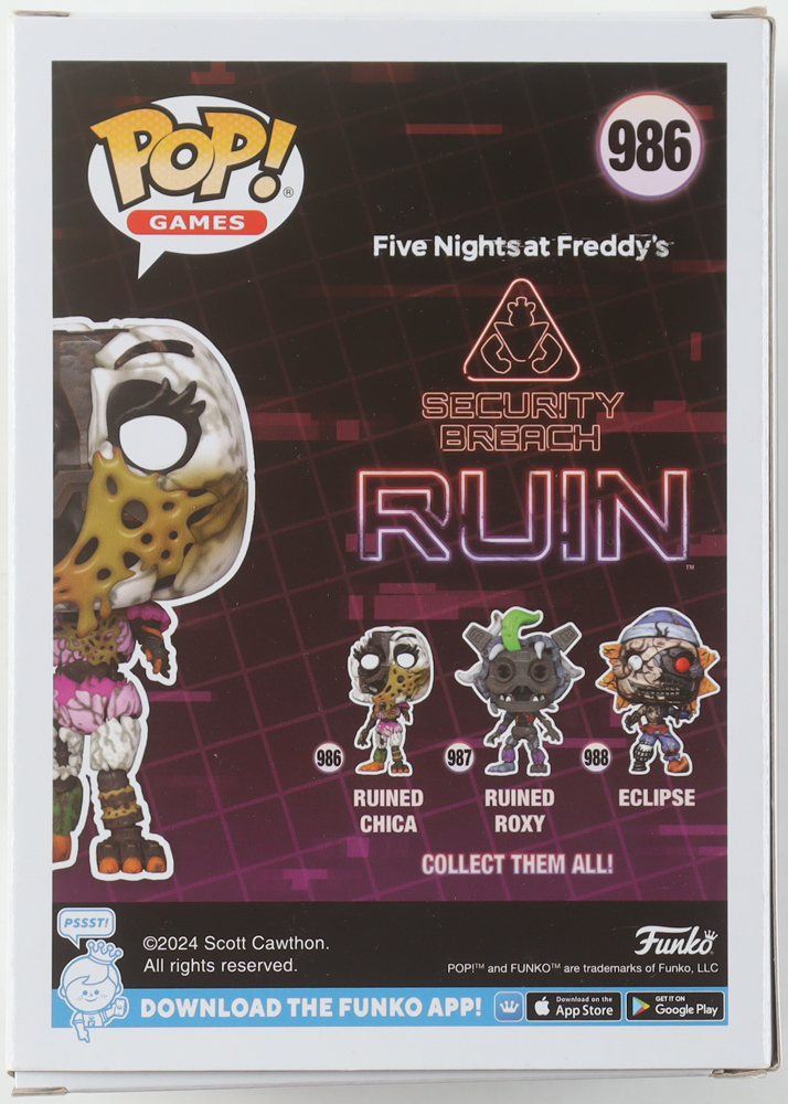 Jess Weiss Signed "Five Nights at Freddy's" Ruined Chica #986 Funko Pop! Vinyl Figure Inscribed "Chica" (JSA)