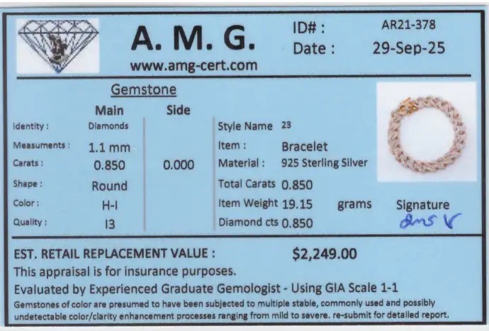0.85 CTW Diamonds 18K Gold Plated Designer Bracelet Size 7.3 Inches| Estimated Retail Value: $2,249 (AMG)