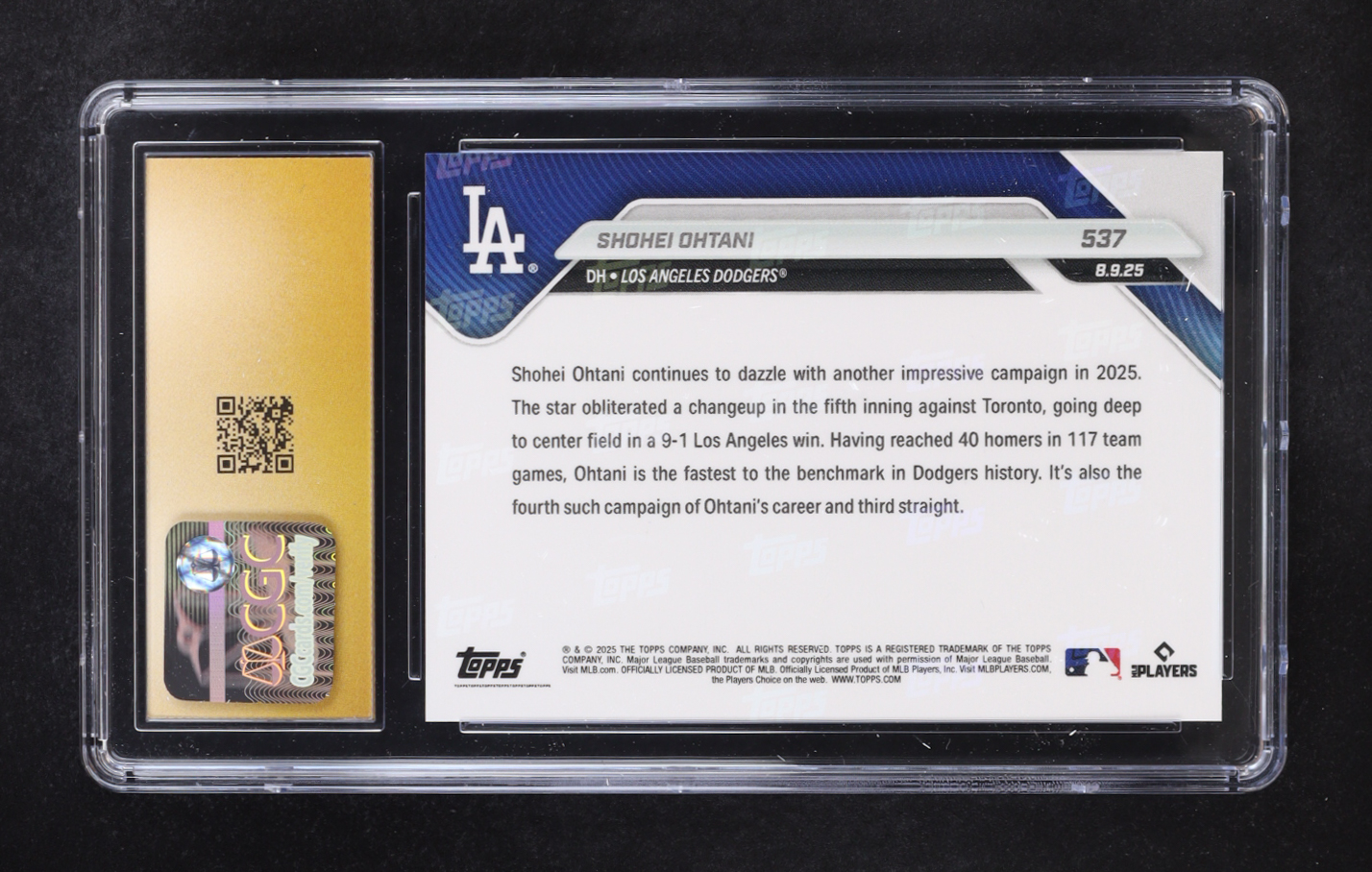 Shohei Ohtani 2025 Topps Now #537 (CGC 10 | Pristine Black Label)