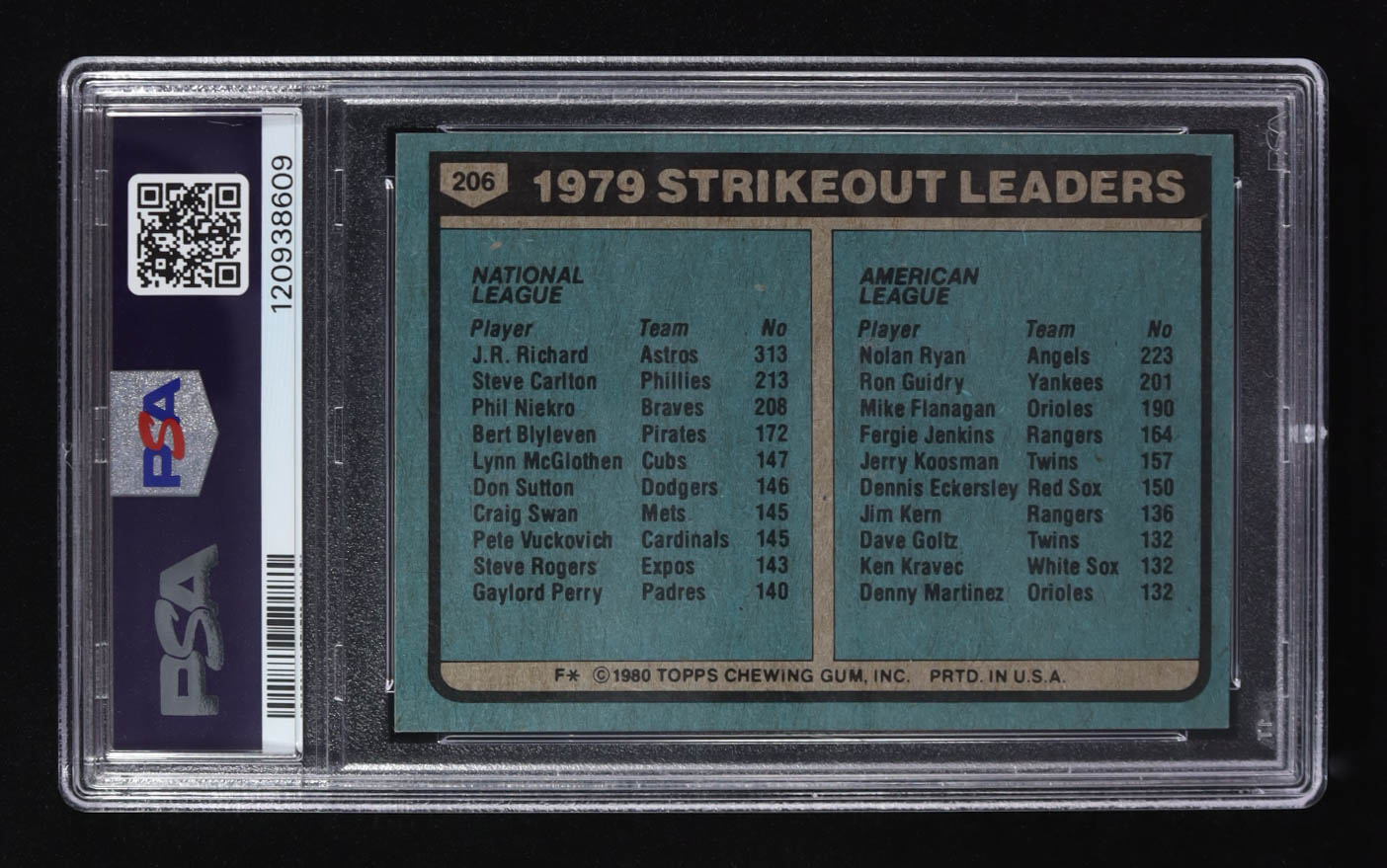 J.R. Richard / Nolan Ryan 1980 Topps #206 Strikeout Leaders (PSA 8)
