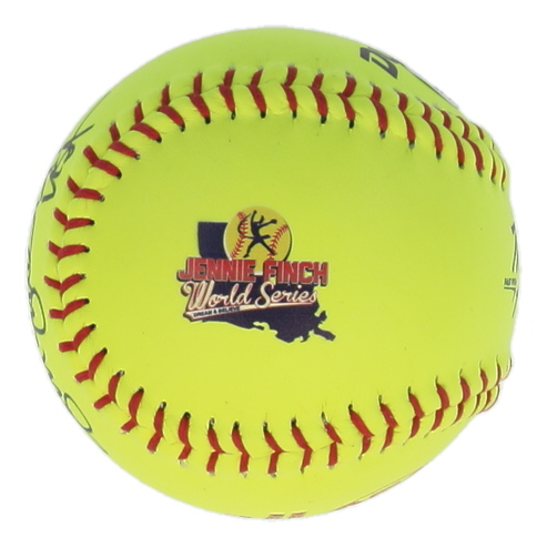 Softball has been hand-signed and inscribed by Jennie Finch (Team USA, HOF). Please note, there are minor stains throughout the softball.