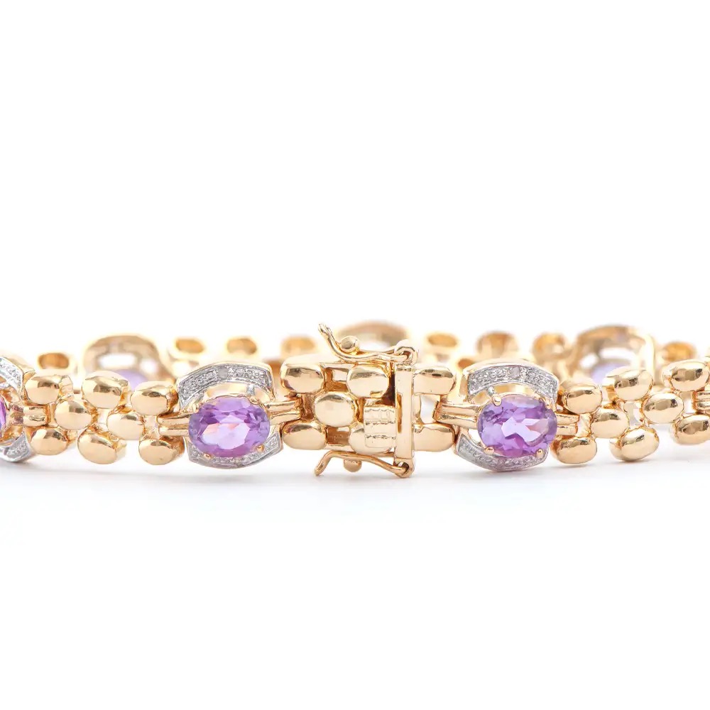 7.76 CTW Amethyst & Diamonds 18K Gold Plated Designer Bracelet Size 7.6 Inches (21.25 grams) Contains: