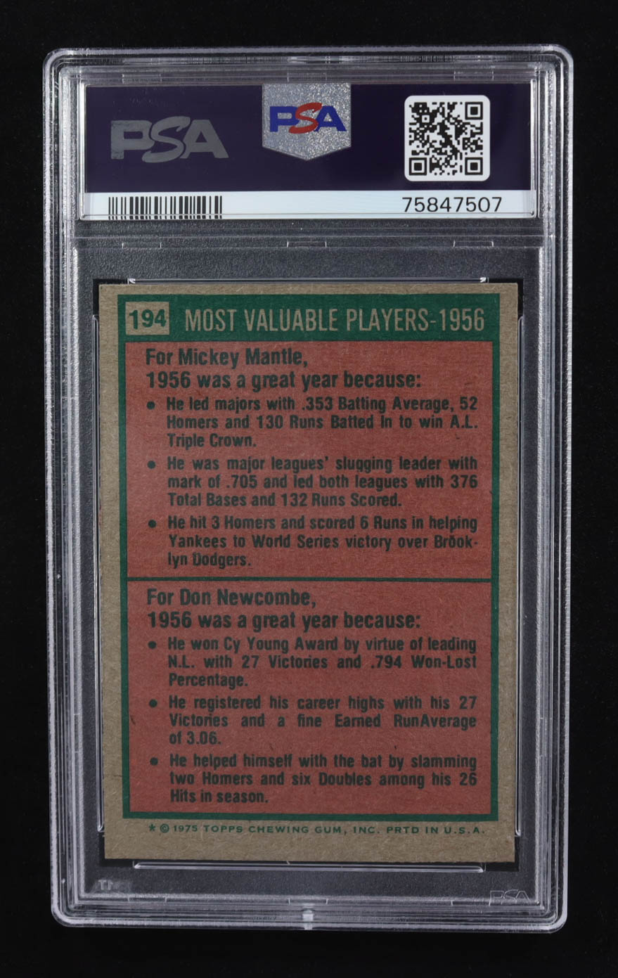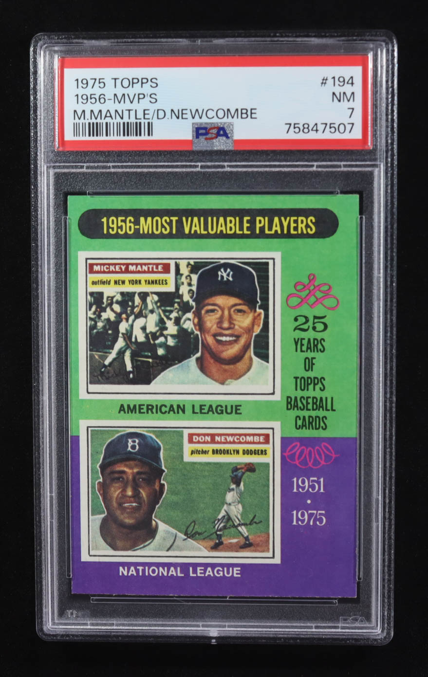 Mickey Mantle / Don Newcombe 1975 Topps #194 MVP (PSA 7)