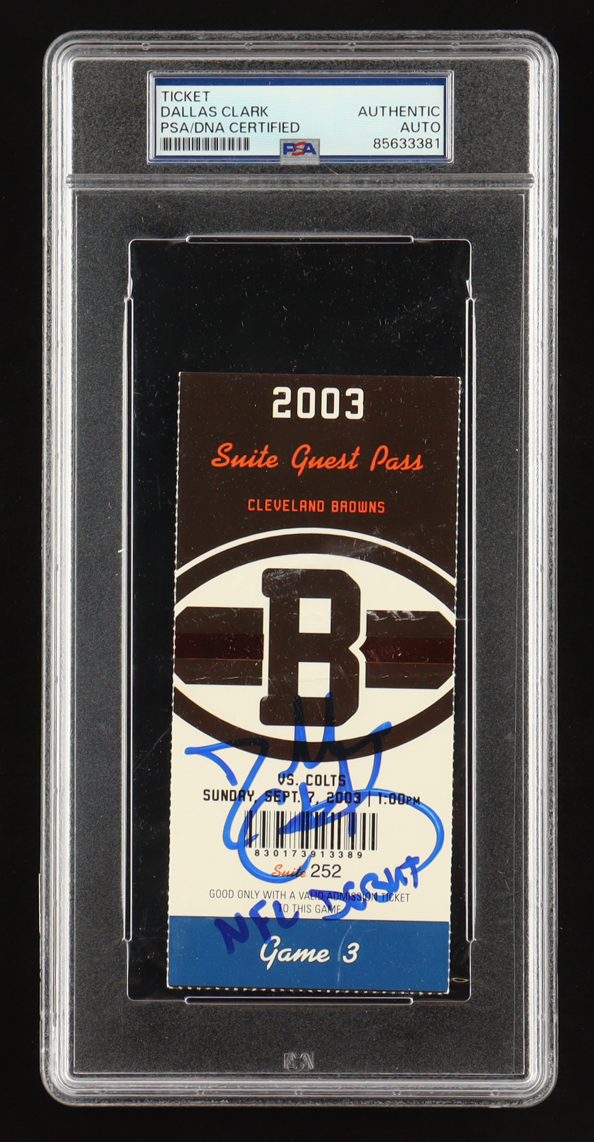 Game ticket dated September 7, 2003 and has been hand-signed and inscribed by Dallas Clark (Indianapolis Colts).