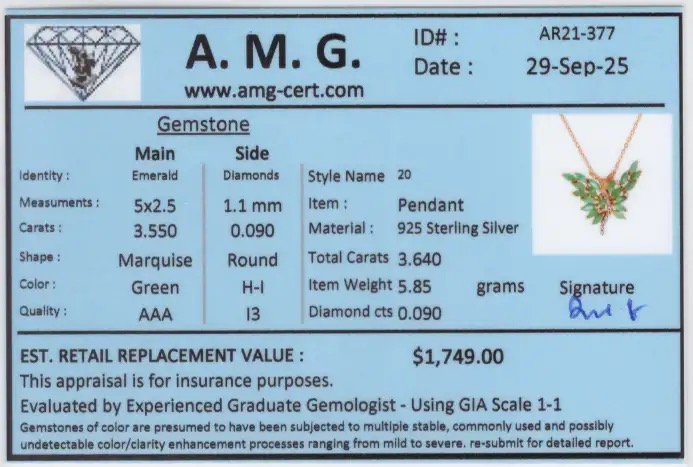 3.64 CTW Emeralds & Diamonds 18K Gold Plated Designer Necklace Size 18 Inches (5.85 grams) Contains: