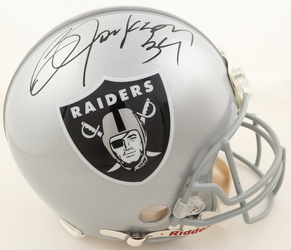 Riddell Oakland Raiders full-size authentic on-field helmet. Hand-signed by Bo Jackson.