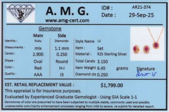 3.15 CTW Ruby & Diamonds 18K Gold Plated Designer Necklace & Earrings Set | Estimated Retail Value: $1,799 (AMG)