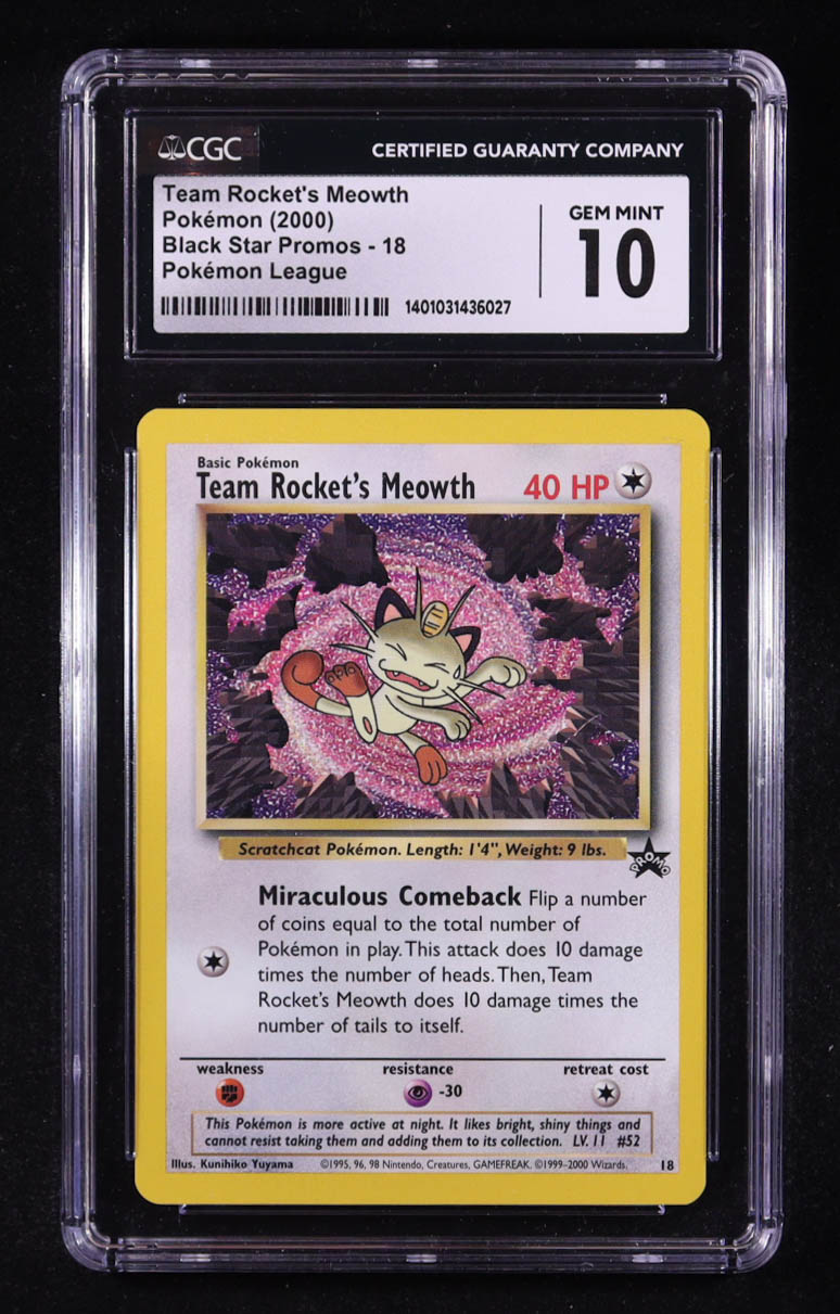 Team Rocket's Meowth 1999-02 Pokemon Wizards of the Coast Black Star Promos #18 (CGC 10)