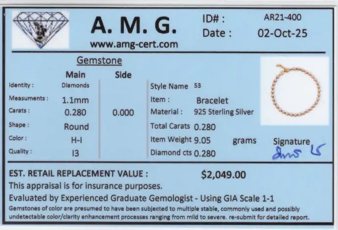 0.28 CTW Diamonds 18K Gold Plated Designer Bracelet Size 8.25 Inches | Estimated Retail Value: $2,049 (AMG)
