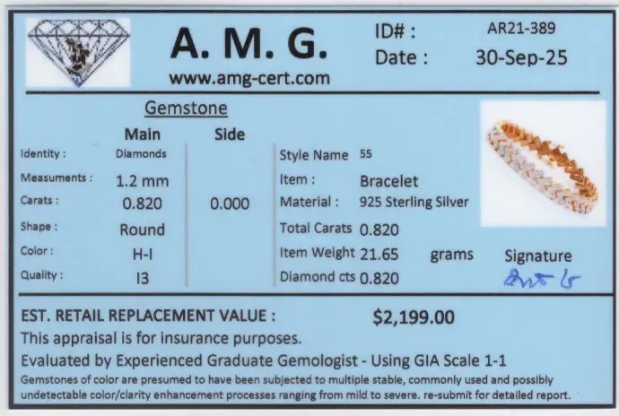 0.82 CTW Diamonds 18K Gold Plated Designer Bracelet Size 8.25 Inches | Estimated Retail Value: $2,199 (AMG)