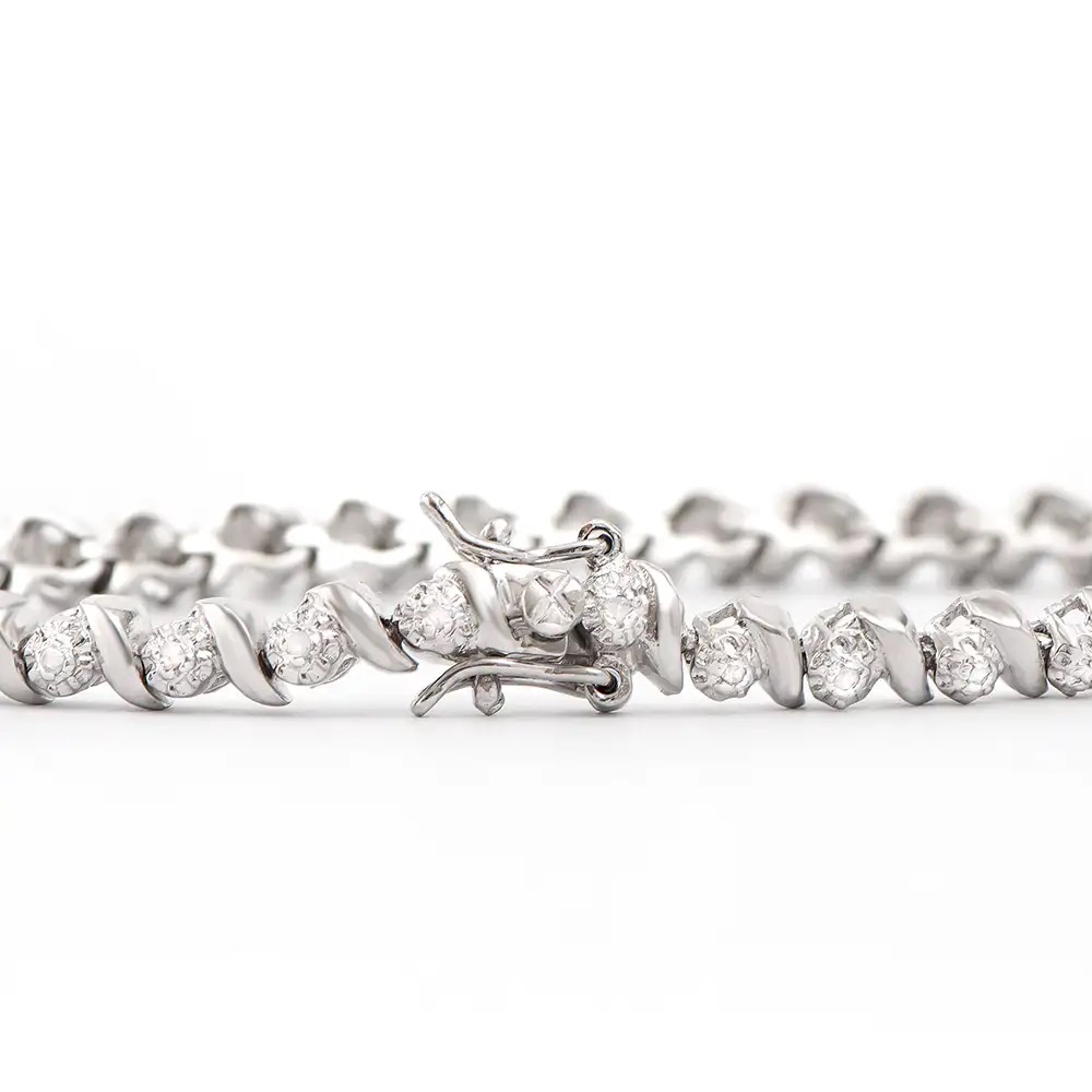 0.33 CTW Diamond Rhodium Plated Designer Bracelet Size 7.5 Inches (10.45 grams) Contains: