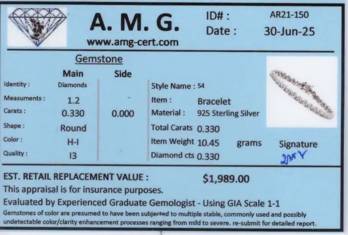 0.33 CTW Diamond Rhodium Plated Designer Bracelet Size 7.5 Inches | Estimated Retail Value: $1,989 (AMG)