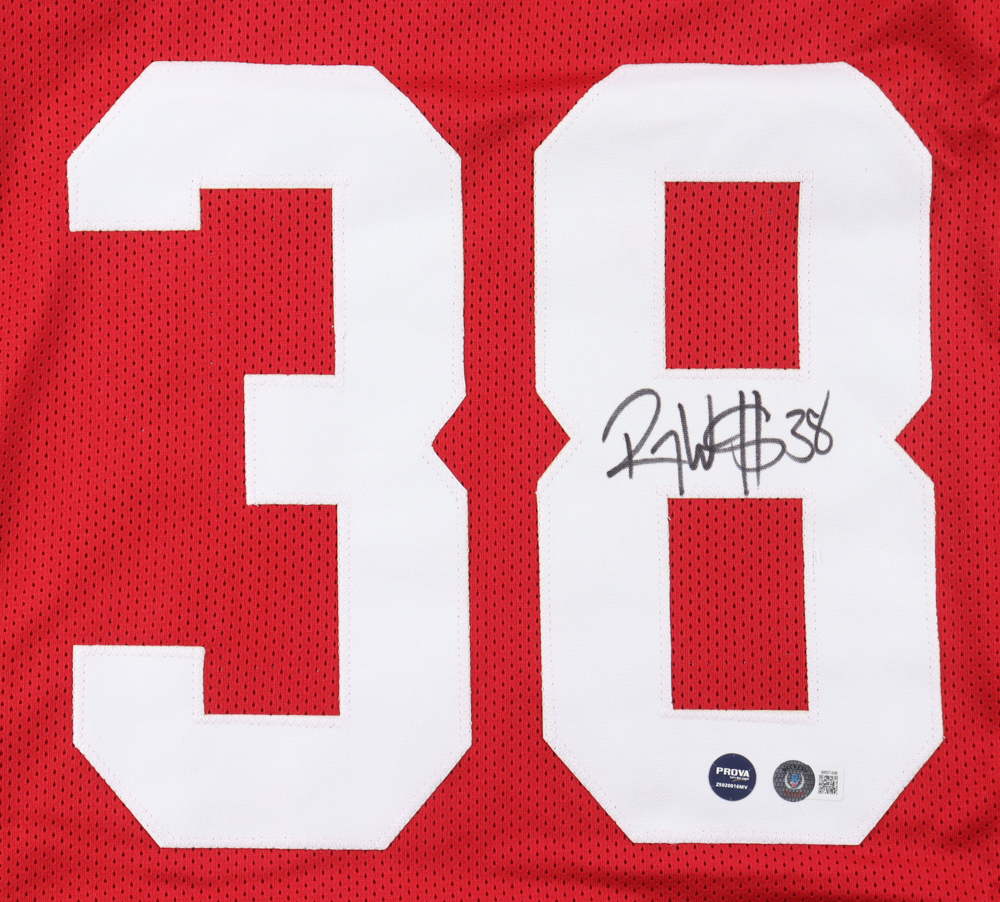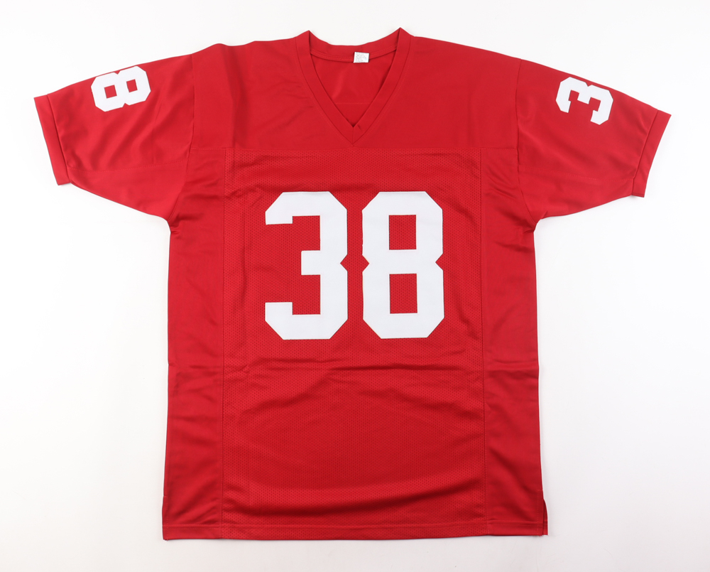 Custom jersey. Everything is sewn on, size XL. Hand-signed by Roy Williams.