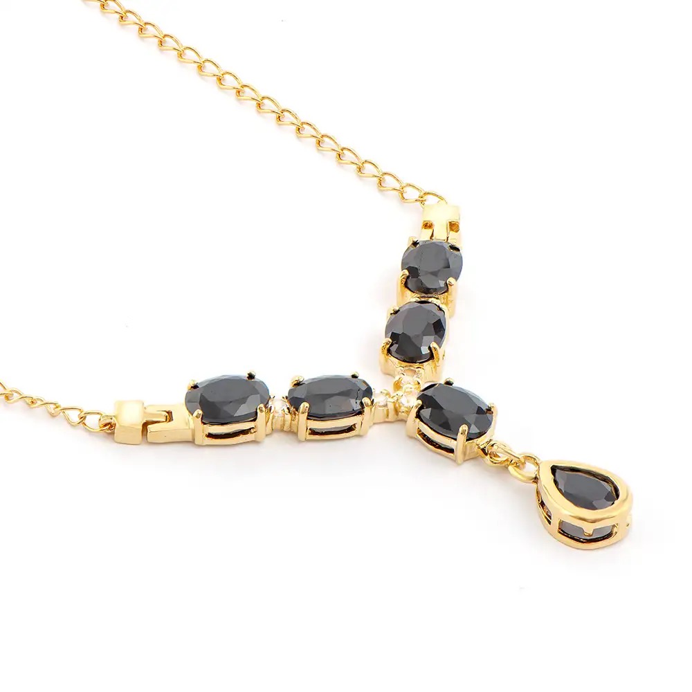 9.38 CTW Black Sapphire & White Topaz 18K Gold Plated Designer Necklace Size 19 Inches (9.65 grams) Contains: