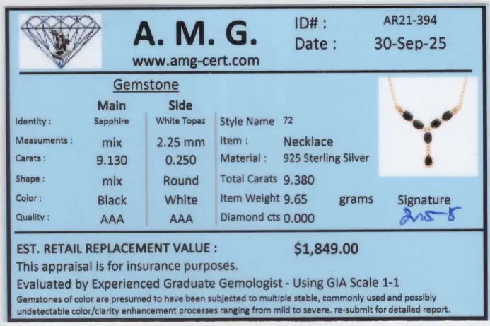9.38 CTW Black Sapphire & White Topaz 18K Gold Plated Designer Necklace Size 19 Inches | Estimated Retail Value: $1,849 (AMG)