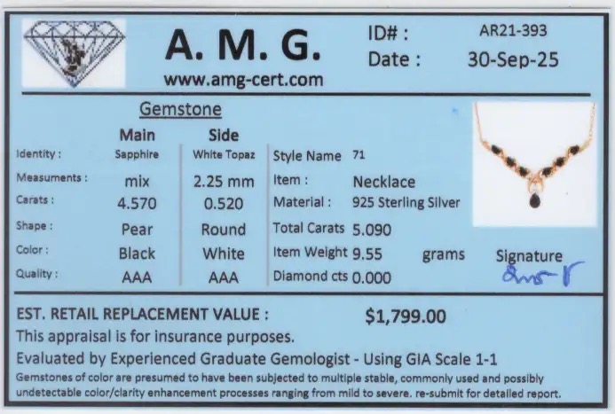 5.09 CTW Black Sapphire & White Topaz 18K Gold Plated Designer Necklace Size 19 Inches | Estimated Retail Value: $1799 (AMG)