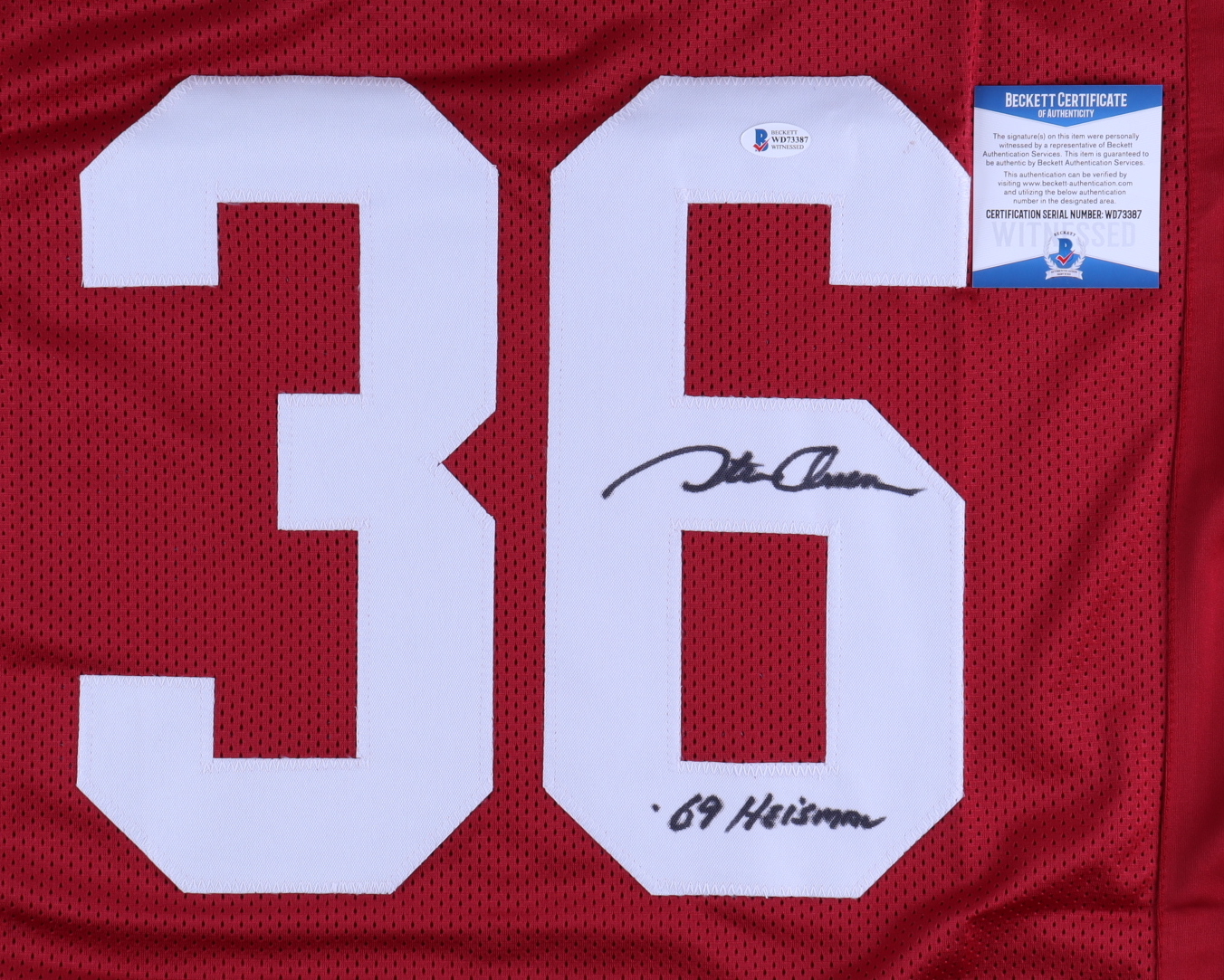 Steve Owens Signed Jersey Inscribed "'69 Heisman" (Beckett)