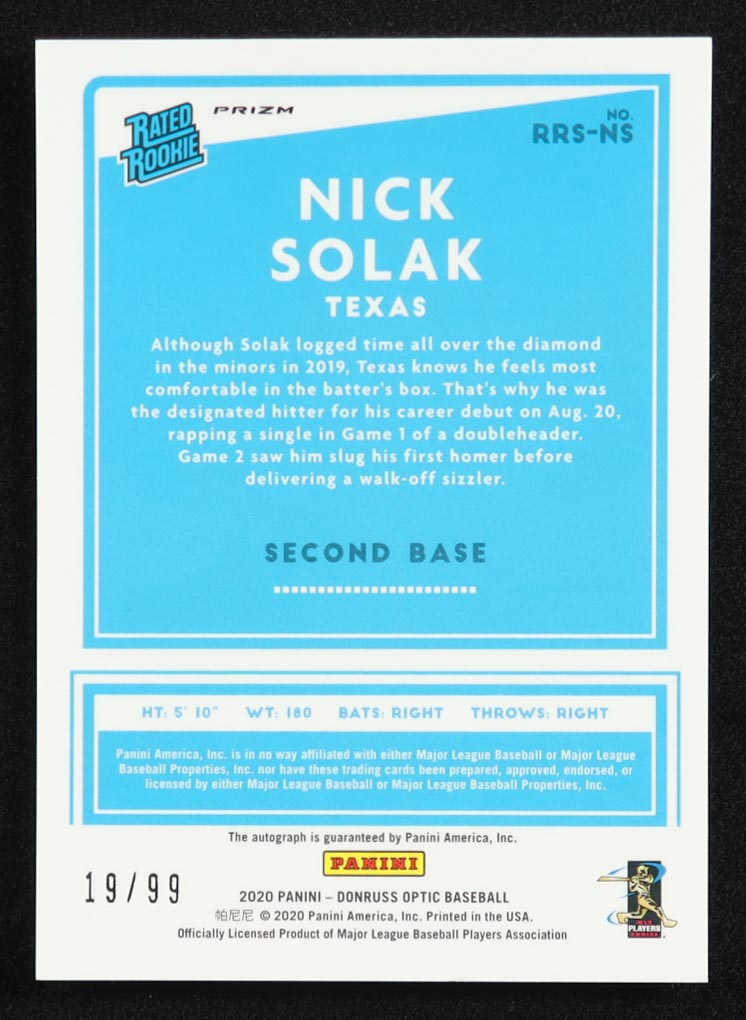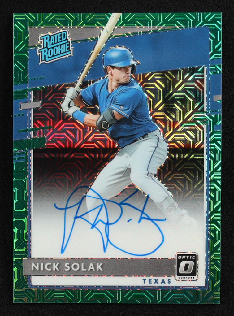 Nick Solak 2020 Donruss Optic Rated Rookies Signatures Green Mojo #7 RC #19/99