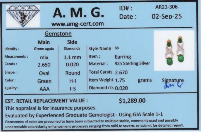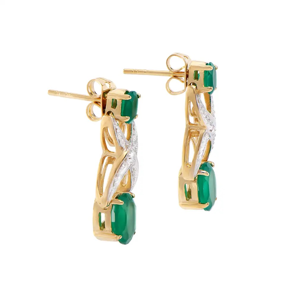2.67 CTW Green Agate & Diamonds 18K Gold Plated Designer Earrings| Estimated Retail Value: $1,289 (AMG)