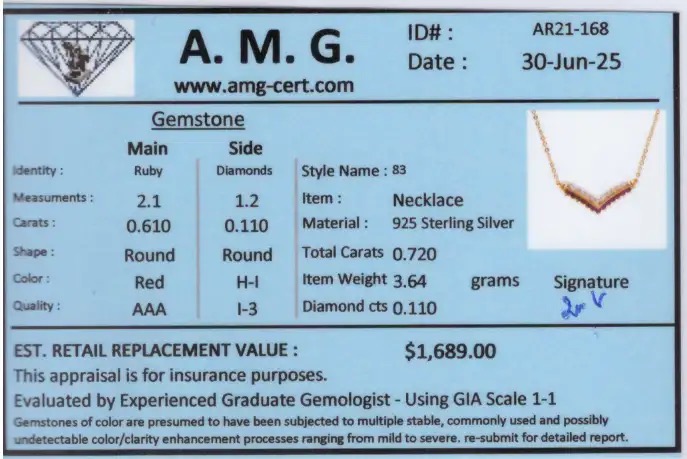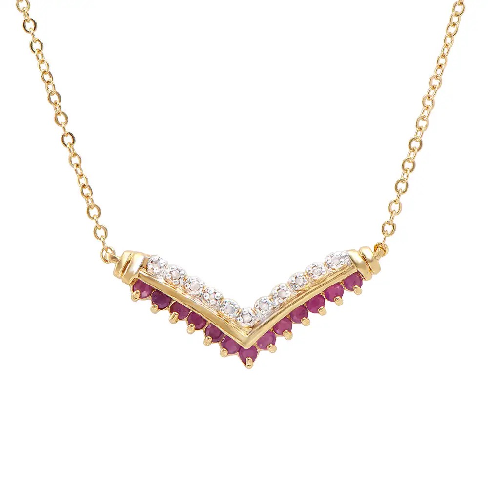 0.72 CTW Ruby& Diamond 18K Gold Plated Designer Necklace Size 19 Inches | Estimated Retail Value: $1,689 (AMG)