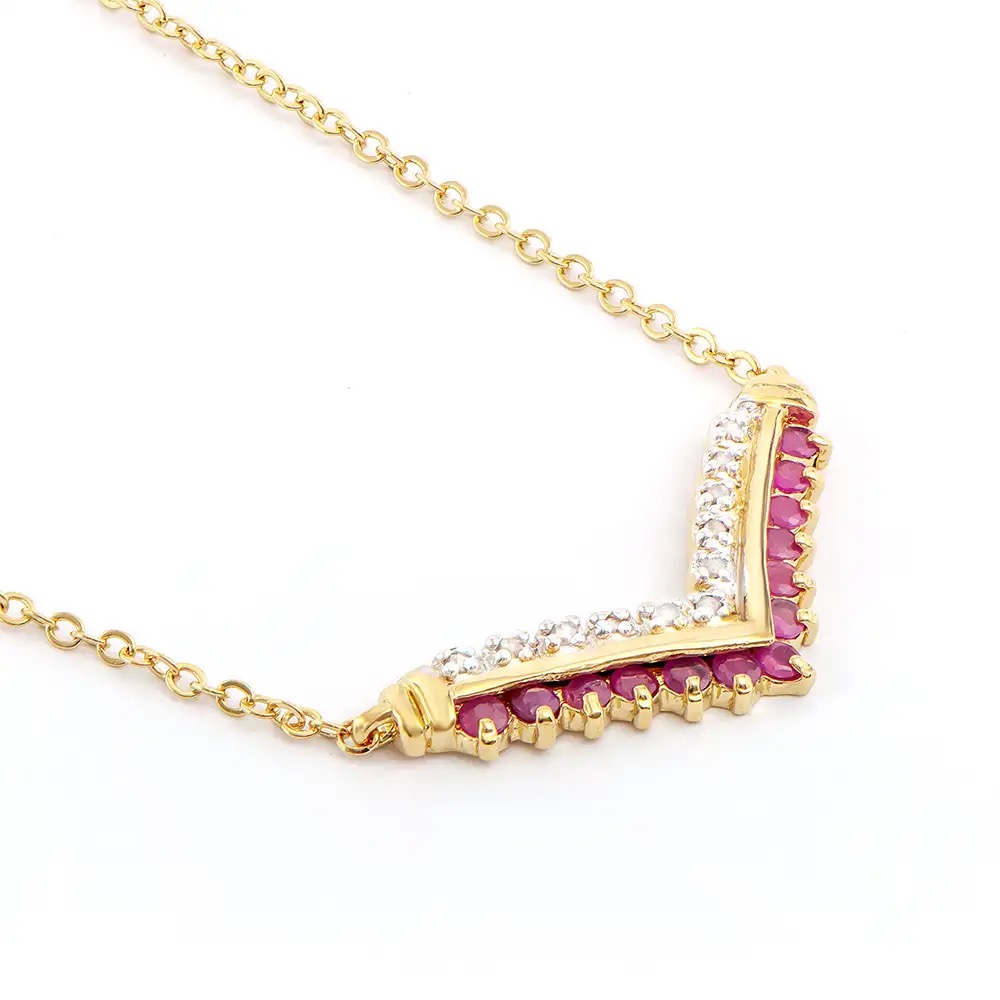 0.72 CTW Ruby& Diamond 18K Gold Plated Designer Necklace Size 19 Inches (3.64 grams) Contains:
