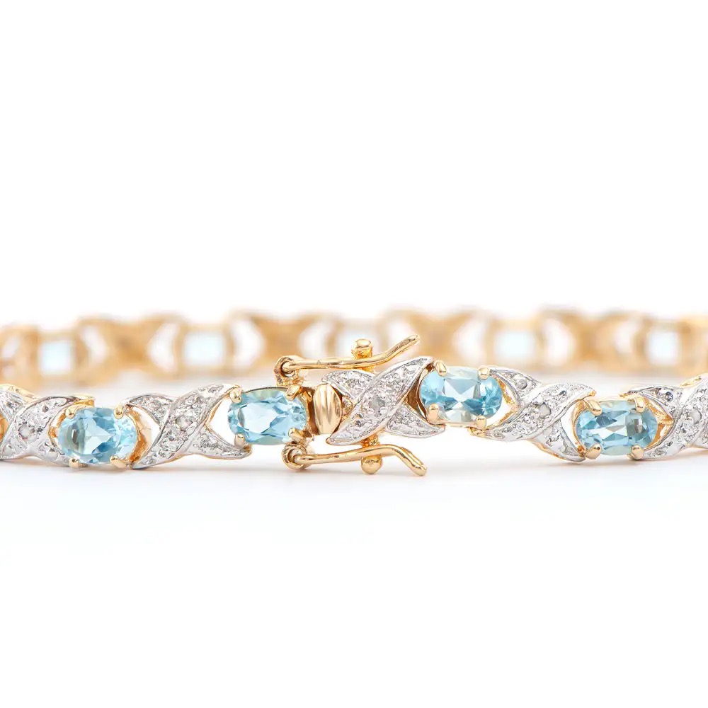 9.14 CTW Blue Topaz & Diamonds 18K Gold Plated Designer Bracelet Size 7.8 Inches (12.5 grams) Contains: