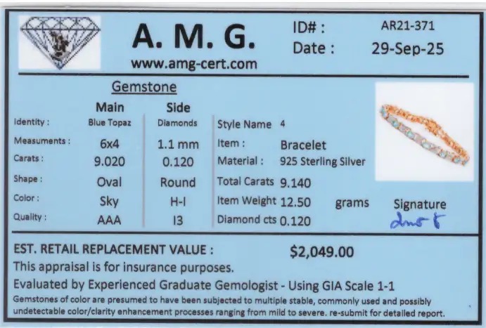 9.14 CTW Blue Topaz & Diamonds 18K Gold Plated Designer Bracelet Size 7.8 Inches | Estimated Retail Value: $2,049 (AMG)