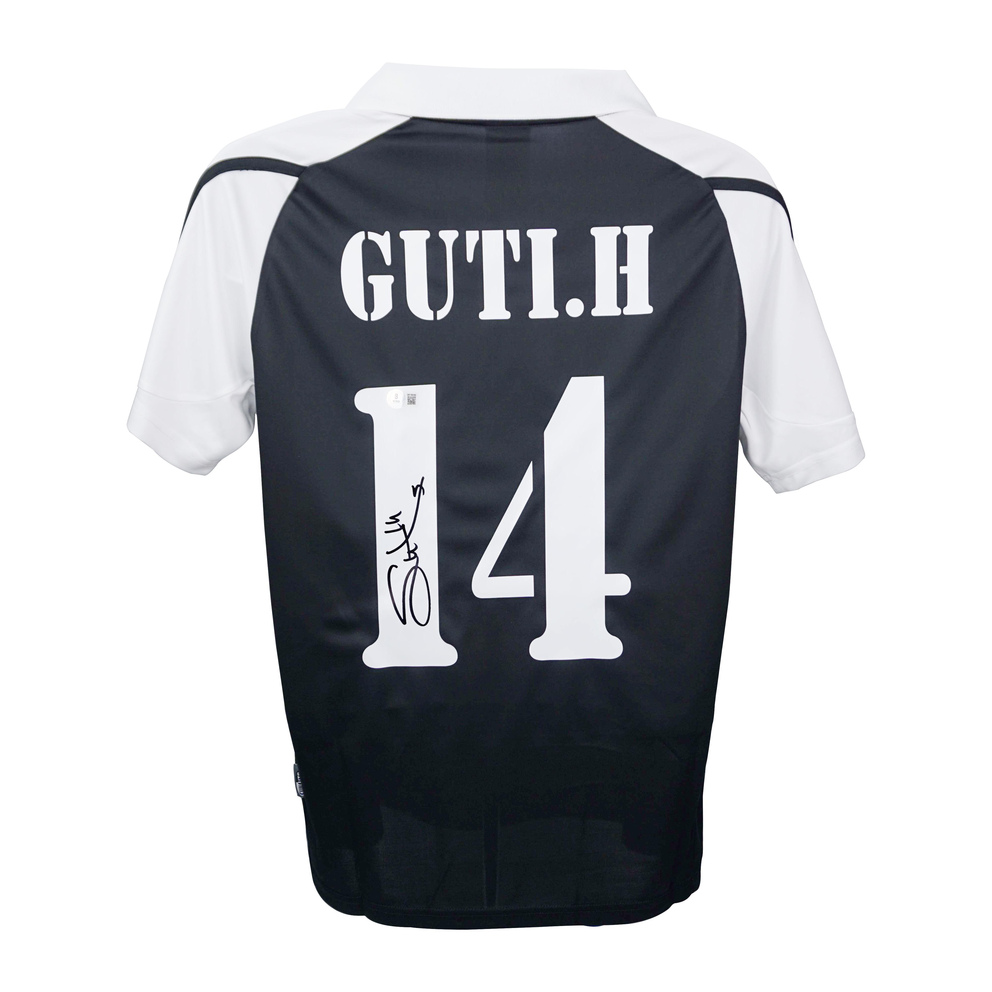 Adidas jersey with everything pressed on, size L. Hand-signed by Guti Hernandez.
