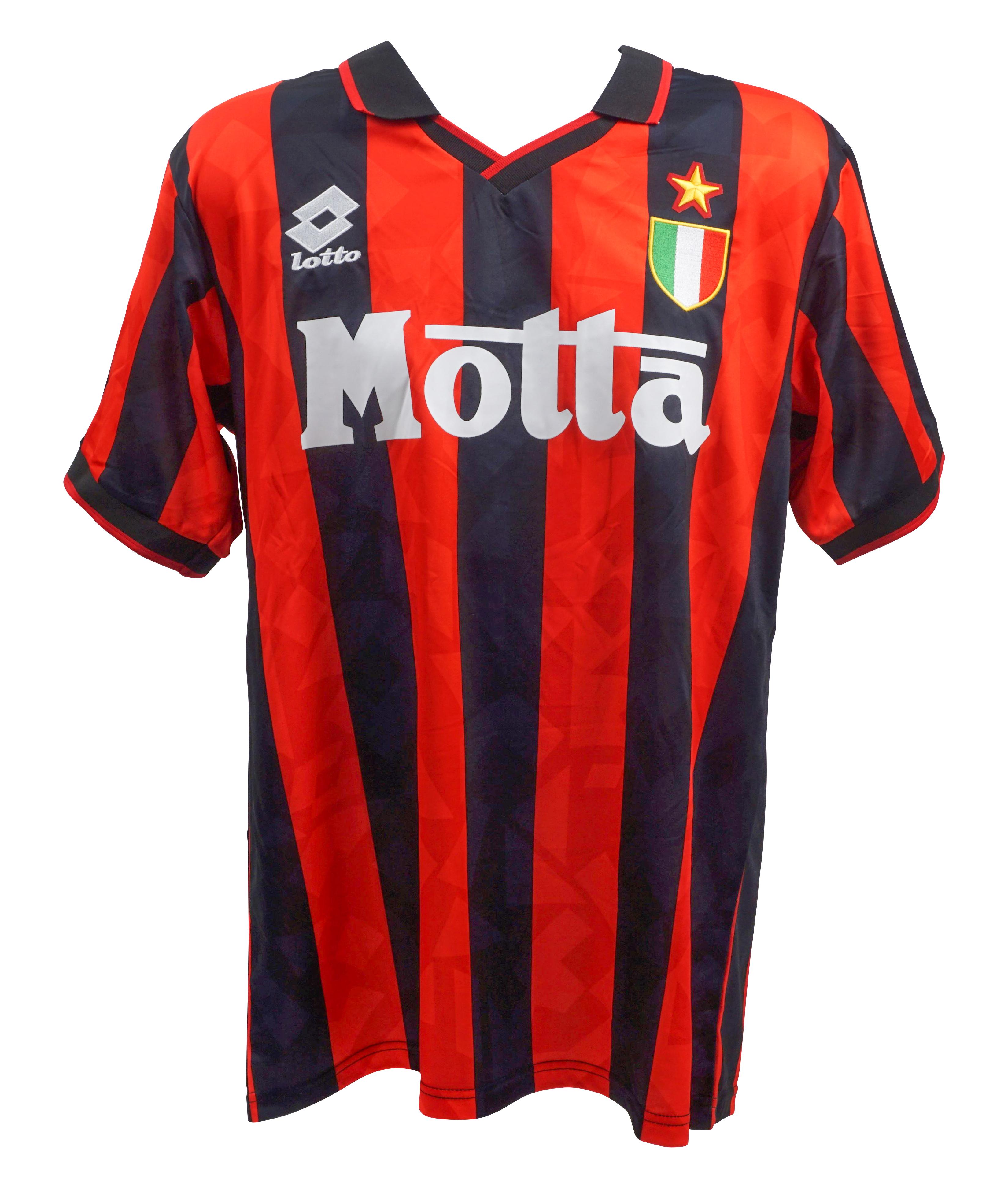 Lotto jersey with everything pressed on, size L. Hand-signed by Paolo Maldini.