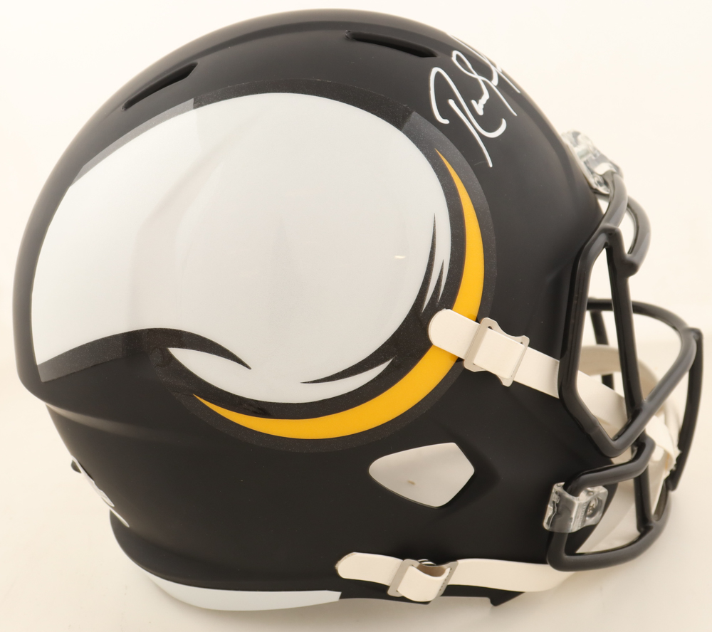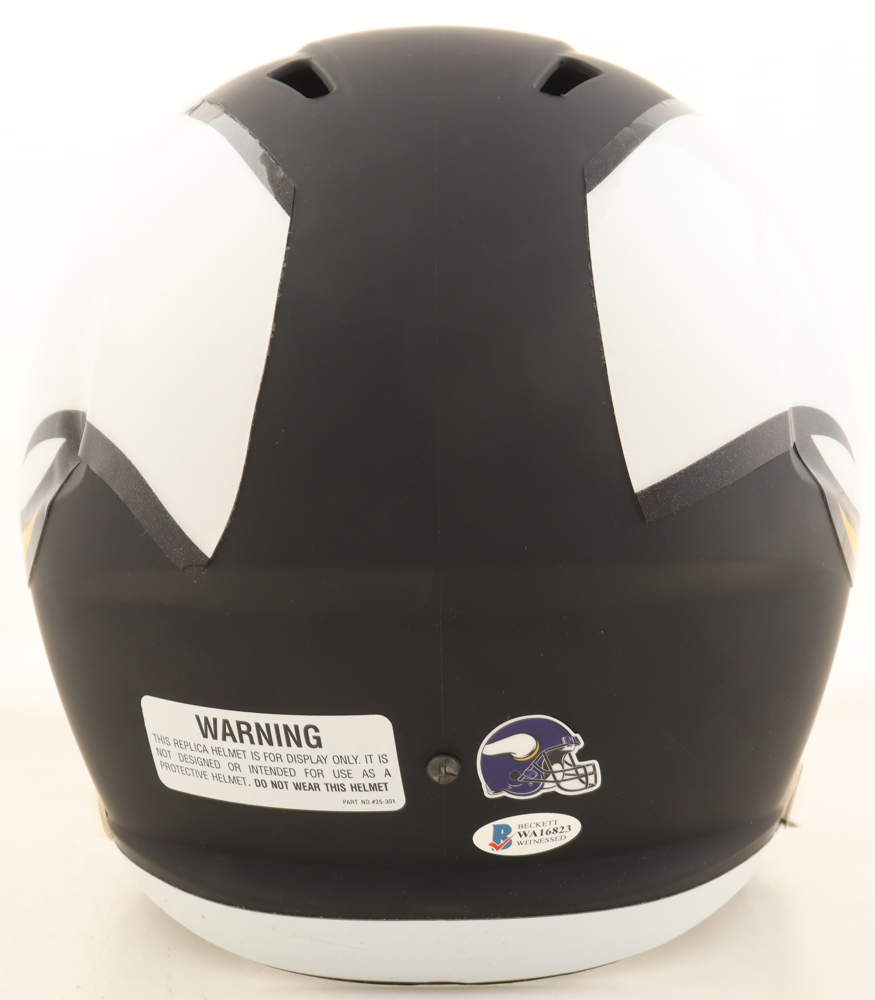 Riddell Minnesota Vikings full-size replica AMP alternate speed helmet. Hand-signed by Randy Moss (HOF).