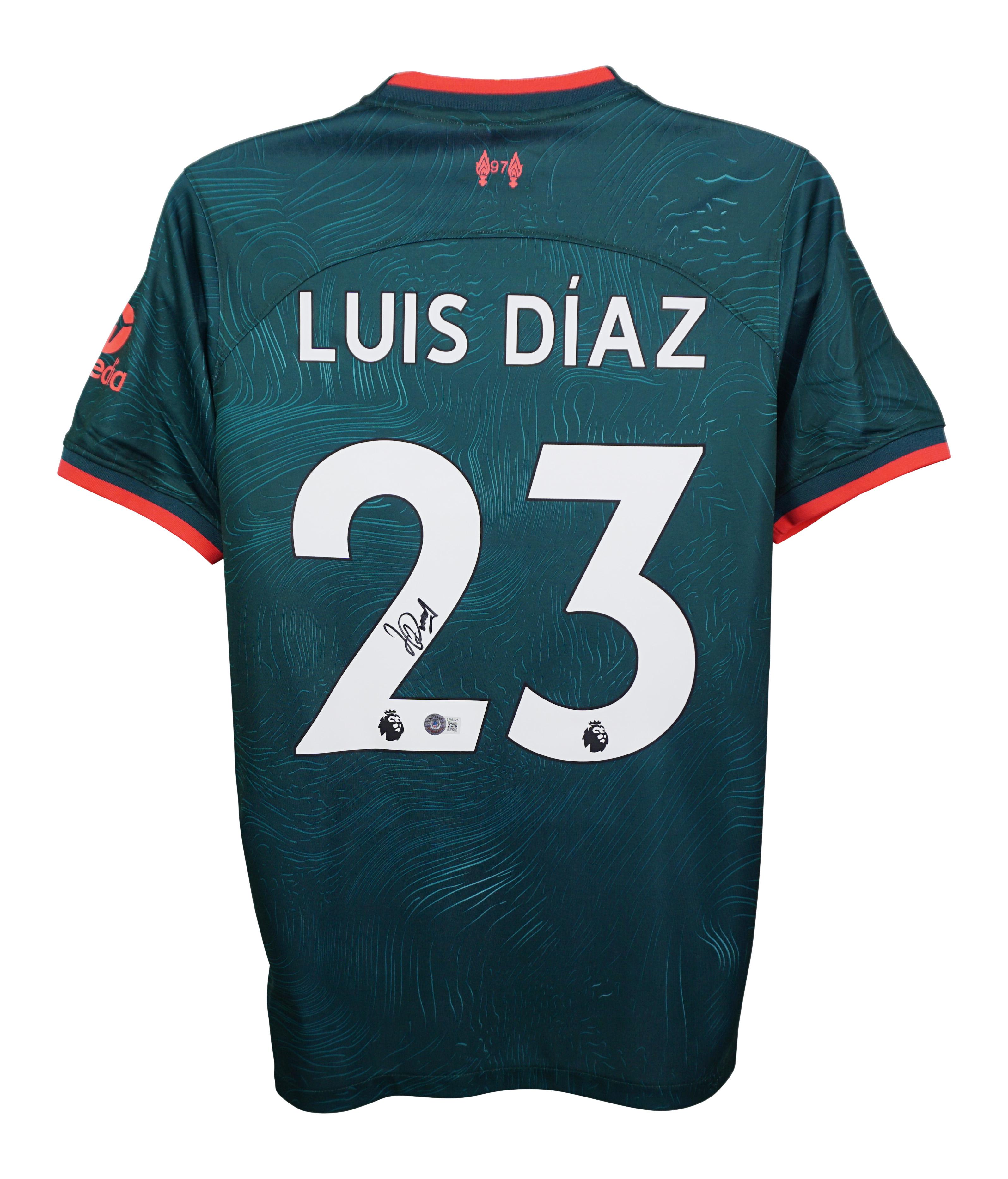 Nike jersey with everything pressed on, size L. Hand-signed by Luis Diaz.