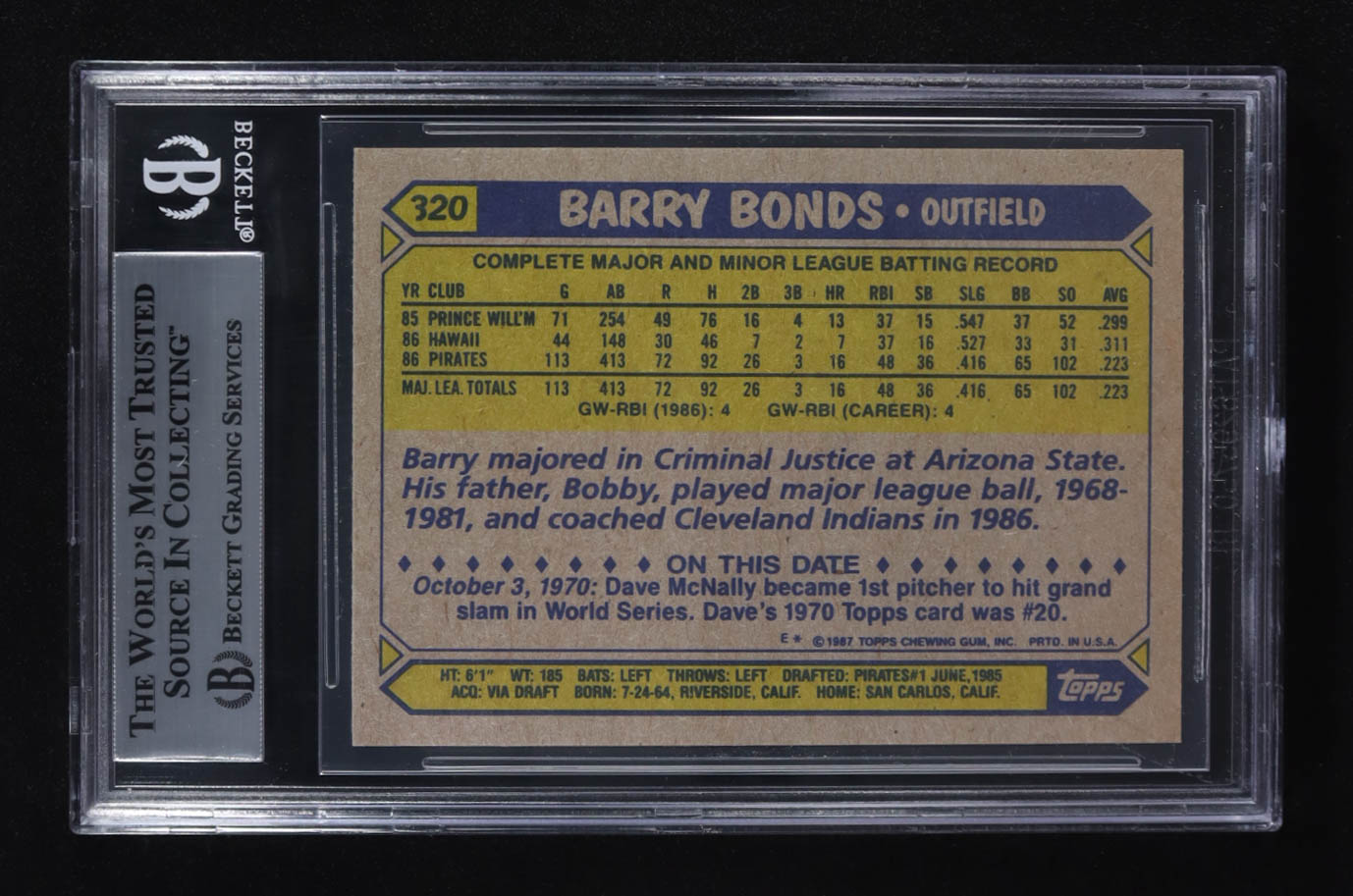 Barry Bonds 1987 Topps #320 RC (BGS 8.5)