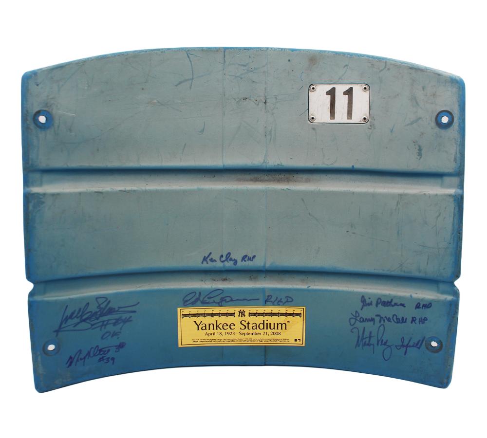 1977 Yankees Stadium Seatback Team-Signed By (7) with Ed Figueroa, Gene Locklear, Mickey Klutts (JSA)