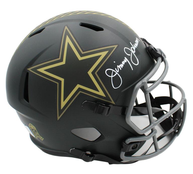 Riddell Dallas Cowboys full-size salute to service alternate speed replica helmet. Hand-signed by Jimmy Johnson (HOF).