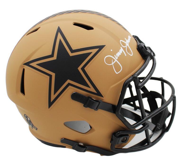 Riddell Dallas Cowboys full-size salute to service alternate speed replica helmet. Hand-signed by Jimmy Johnson (HOF).