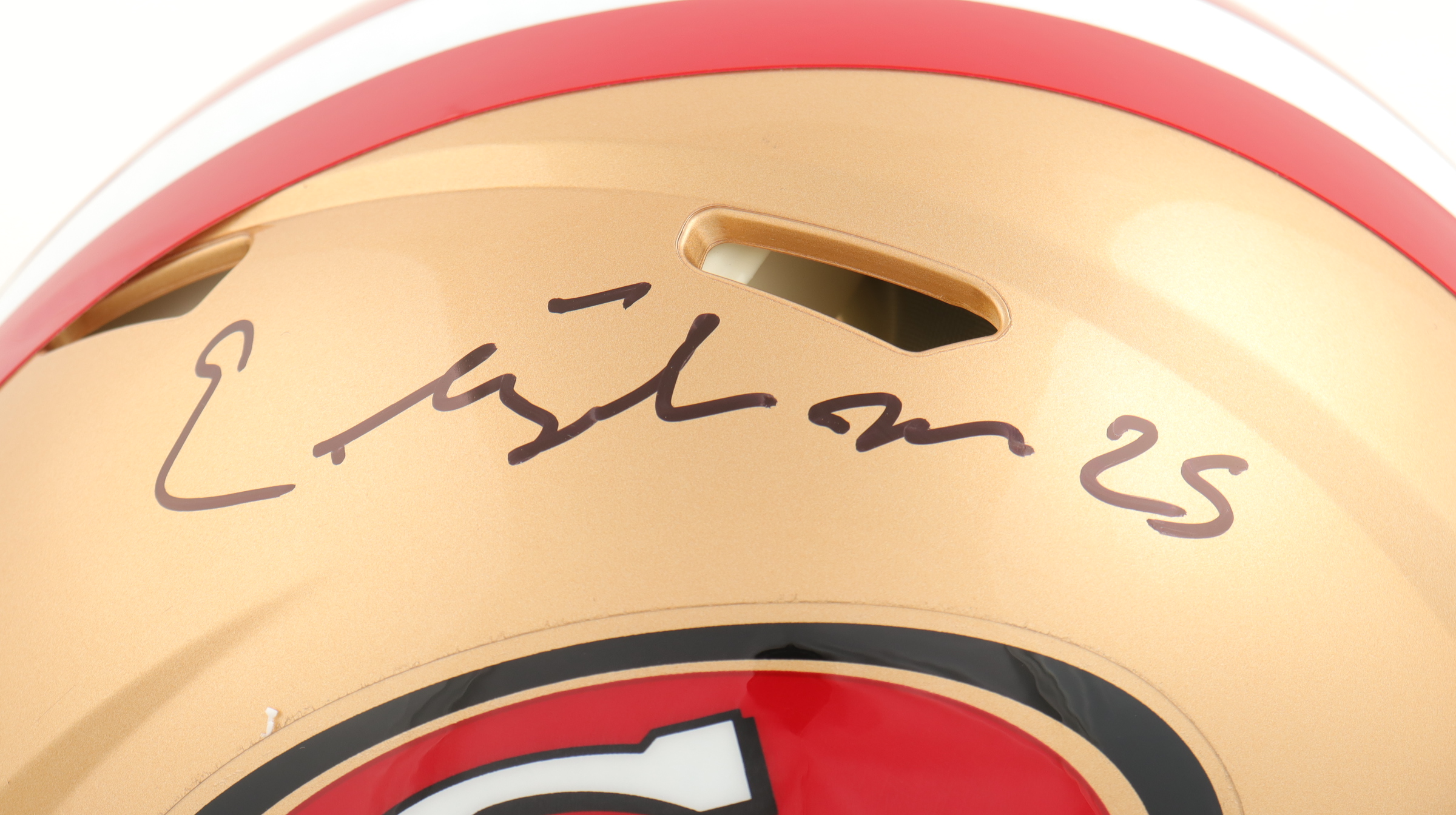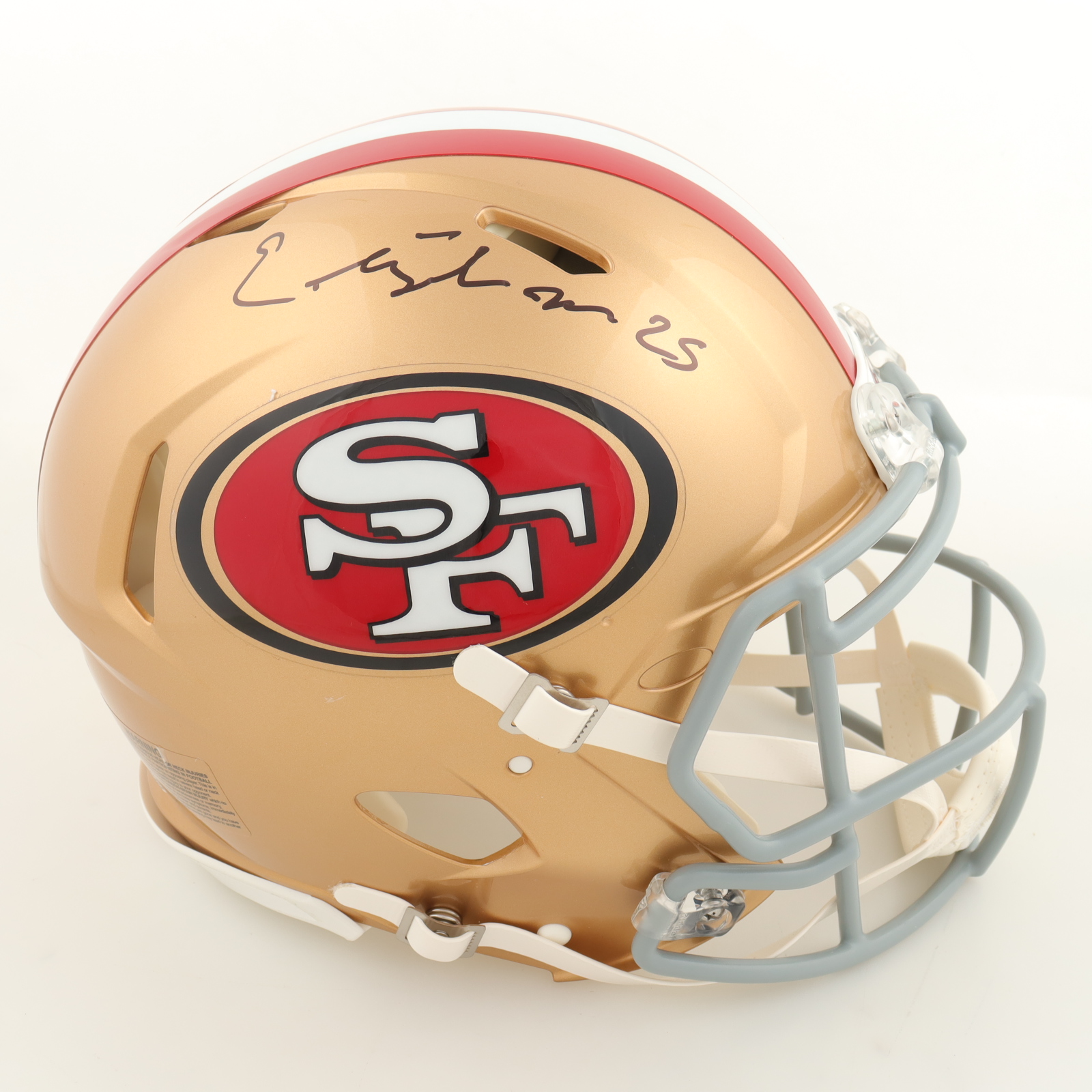 Riddell San Francisco 49ers Full-Size Authentic on-field Speed Helmet. Hand Signed by Elijah Mitchell.
