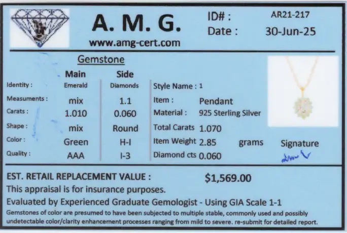 1.06 CTW Emerald & Diamond 18K Gold Plated Designer Necklace 18 Inches | Estimated Retail Value: $1,569 (AMG)