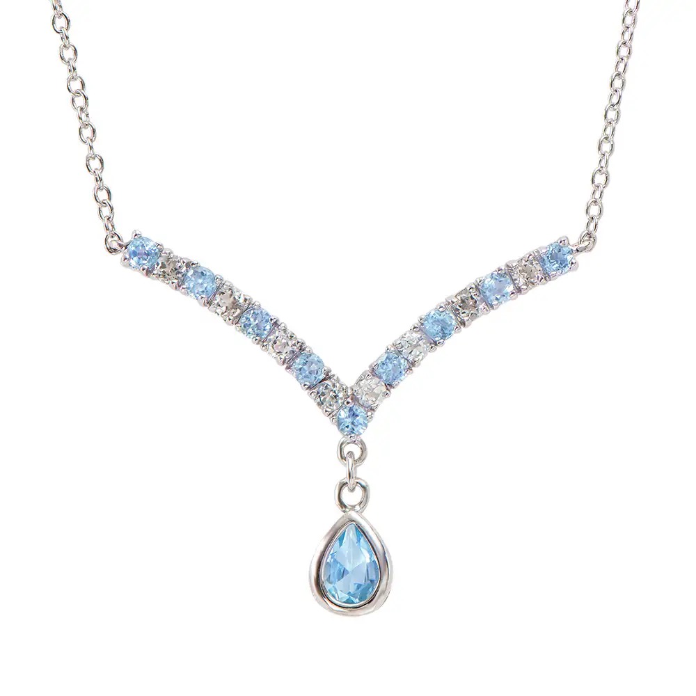 3.25 CTW Blue Topaz & White Topaz Rhodium Plated Designer Necklace 19 Inches (6.85 grams) Contains: