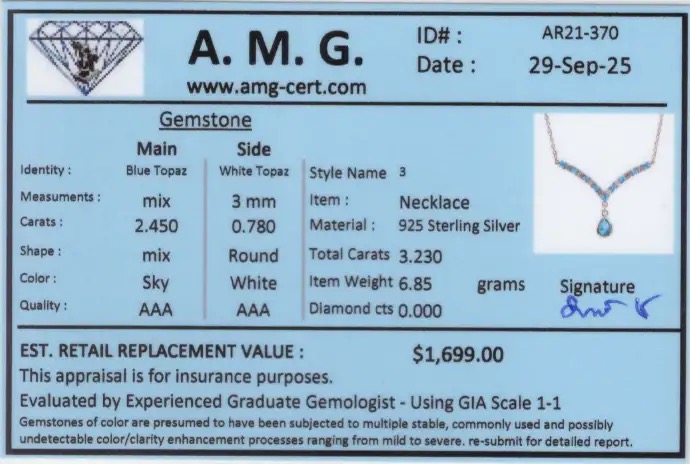 3.25 CTW Blue Topaz & White Topaz Rhodium Plated Designer Necklace 19 Inches | Estimated Retail Value: $1,699 (AMG)
