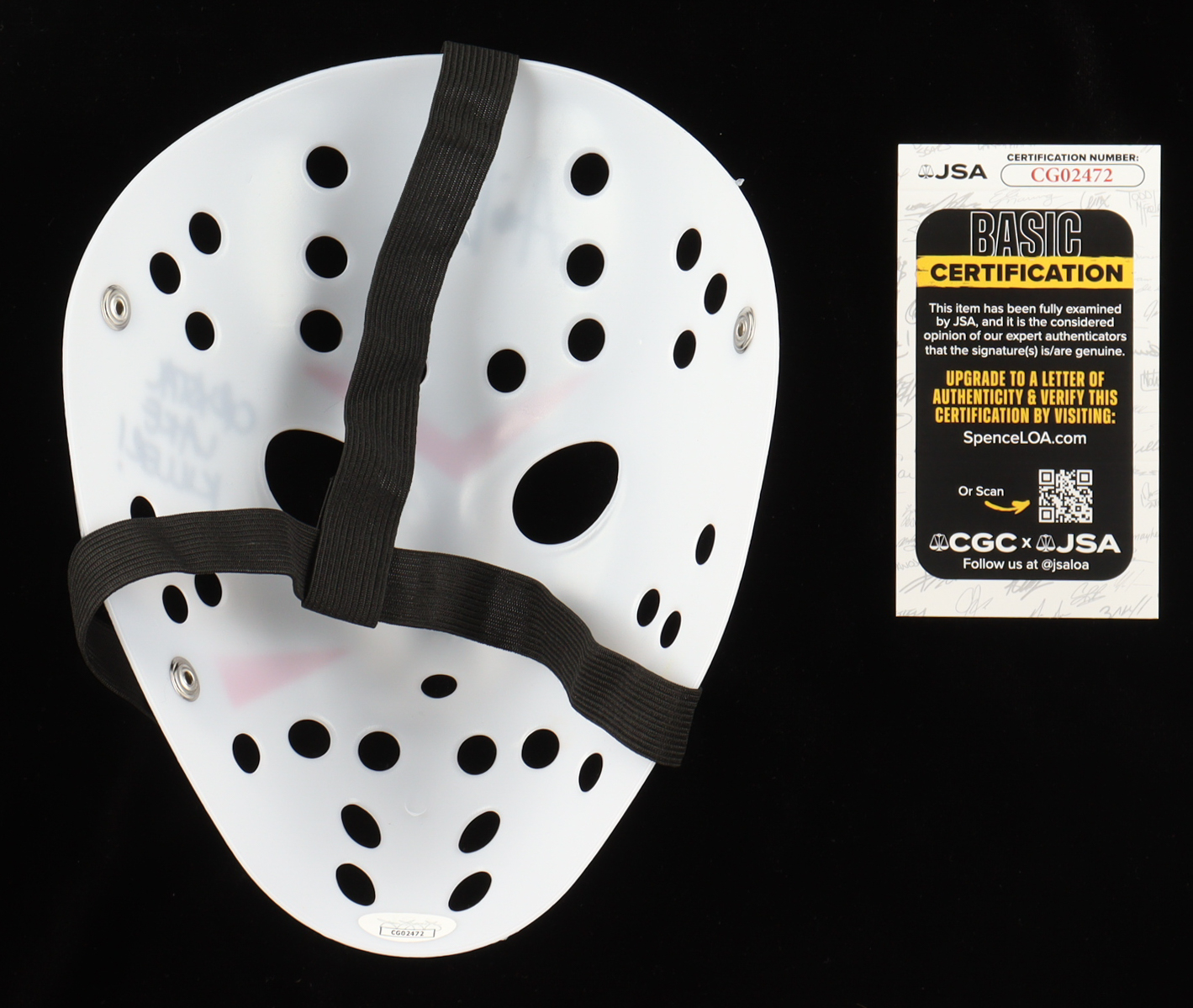 Full-size custom replica plastic mask. Hand-signed and inscribed by Ari Lehman (Jason).